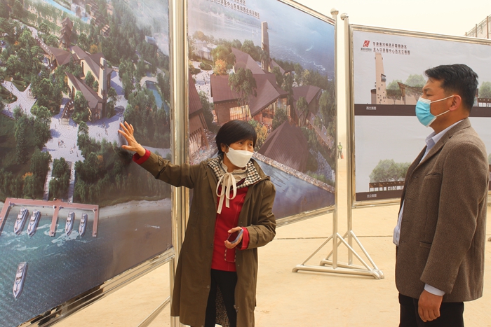 (現(xiàn)場領導嘉賓參觀甘肅黃河炳靈丹霞文旅項目介紹展板)