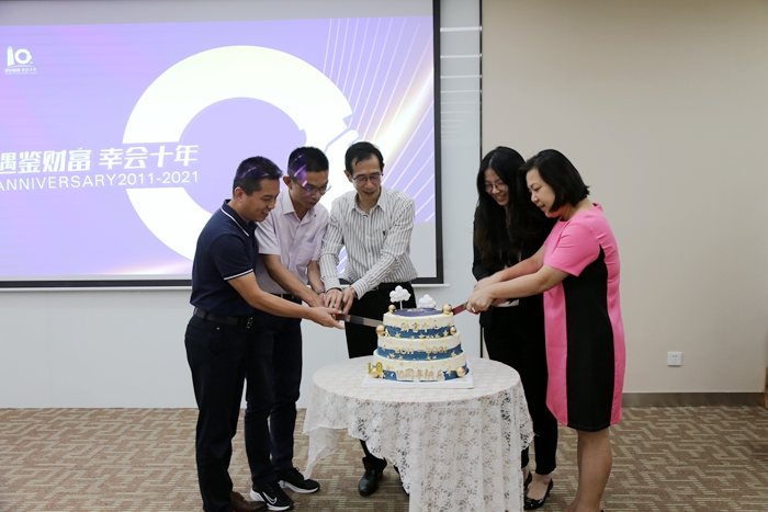 最后,伴隨著歡快的生日祝福的音樂聲,恒興資產(chǎn)管理公司總經(jīng)理宋維超邀請“十年榮譽(yù)客戶”共同切開象征著溫馨而甜蜜的慶祝蛋糕,祝福財富中心10周年生日快樂,也祝福財富中心所有的入駐企業(yè)蒸蒸日上,越來越好。